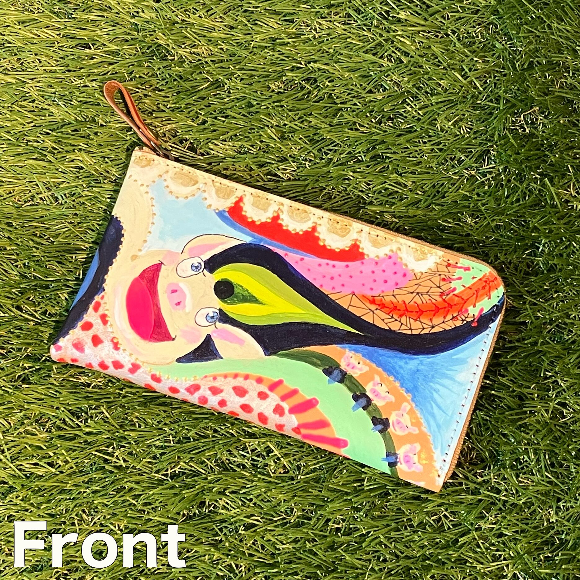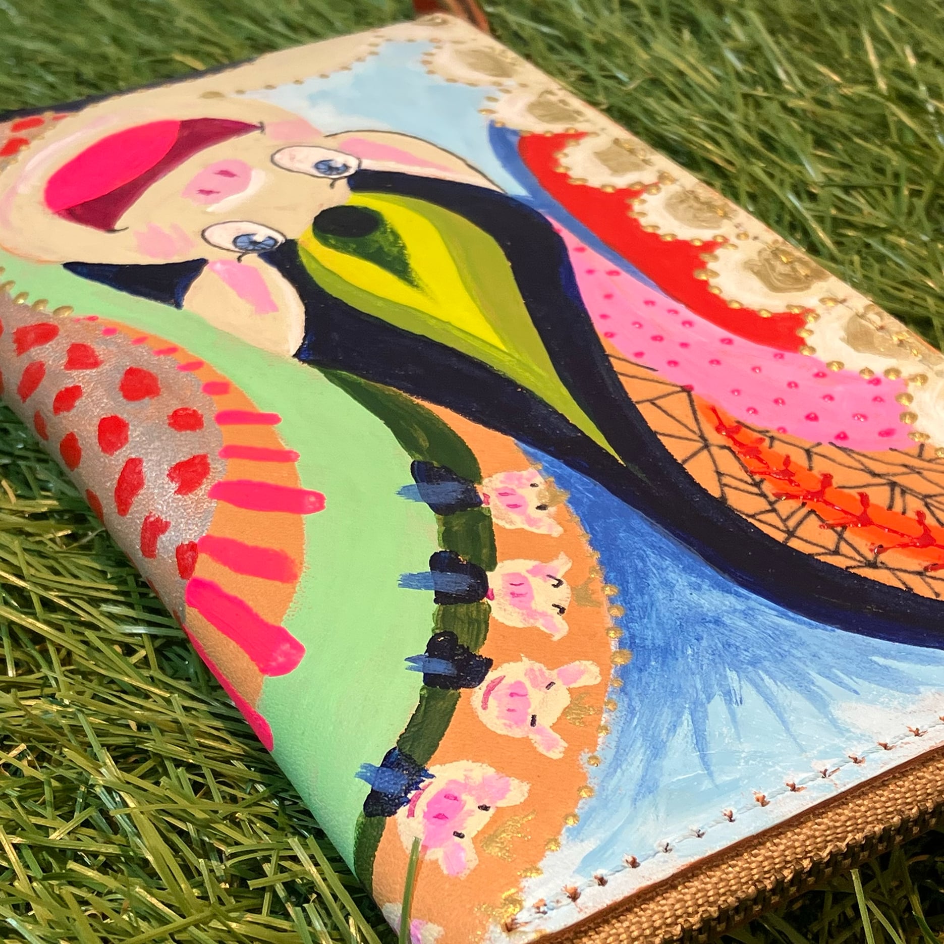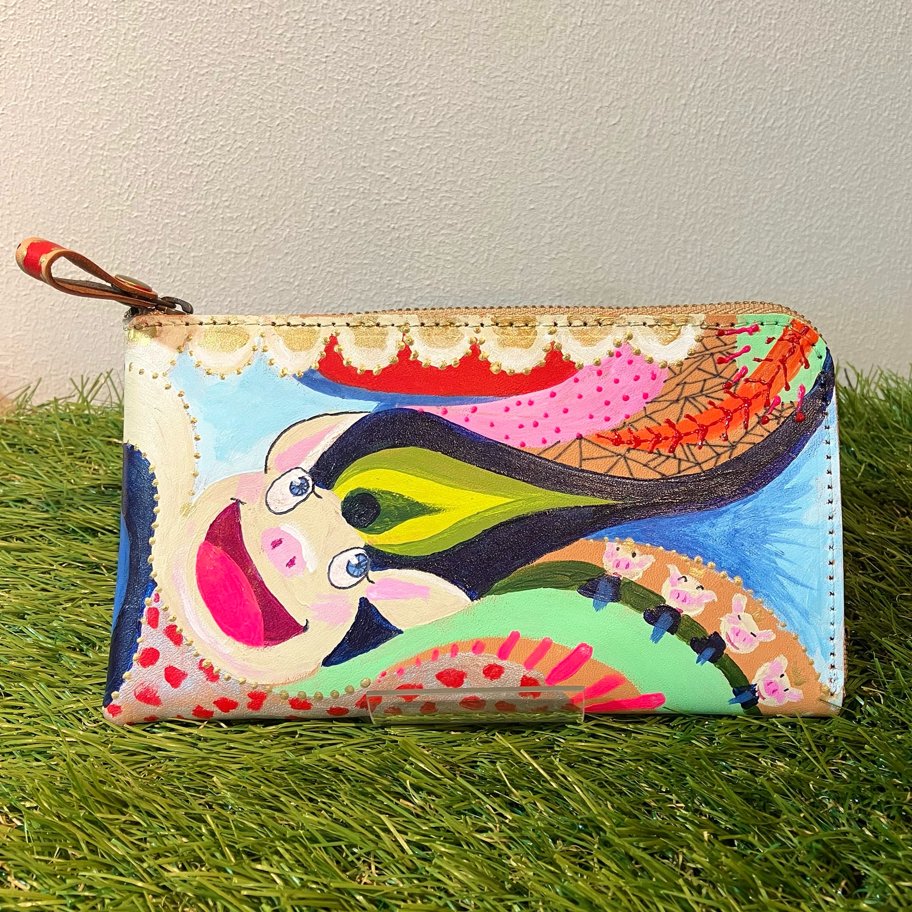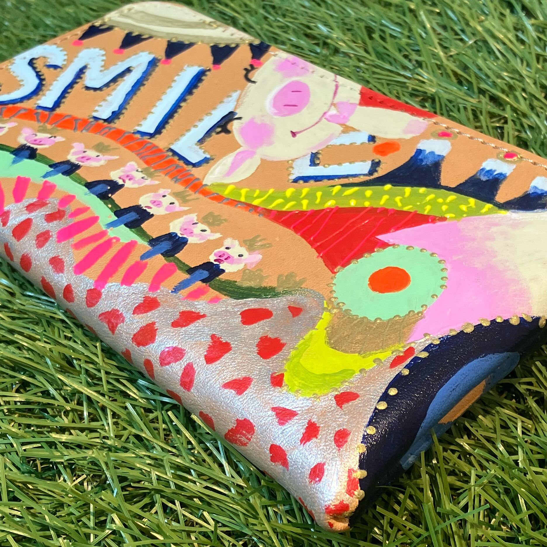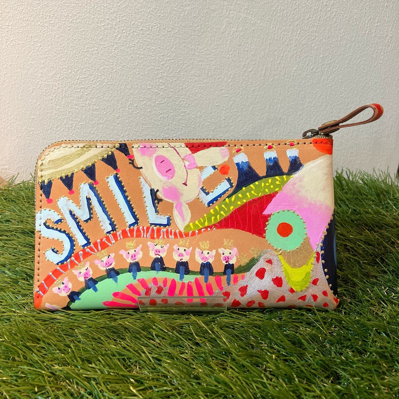 賑やかなブタのイラストがペイントされた、OnlyOne Collectionのコンパクトウォレット。