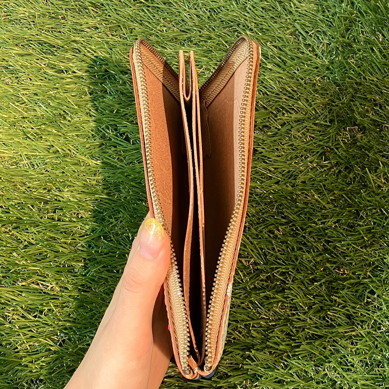 コンパクトな薄さで鞄に入れてもかさばりにくく、カードやお札も収納できます。