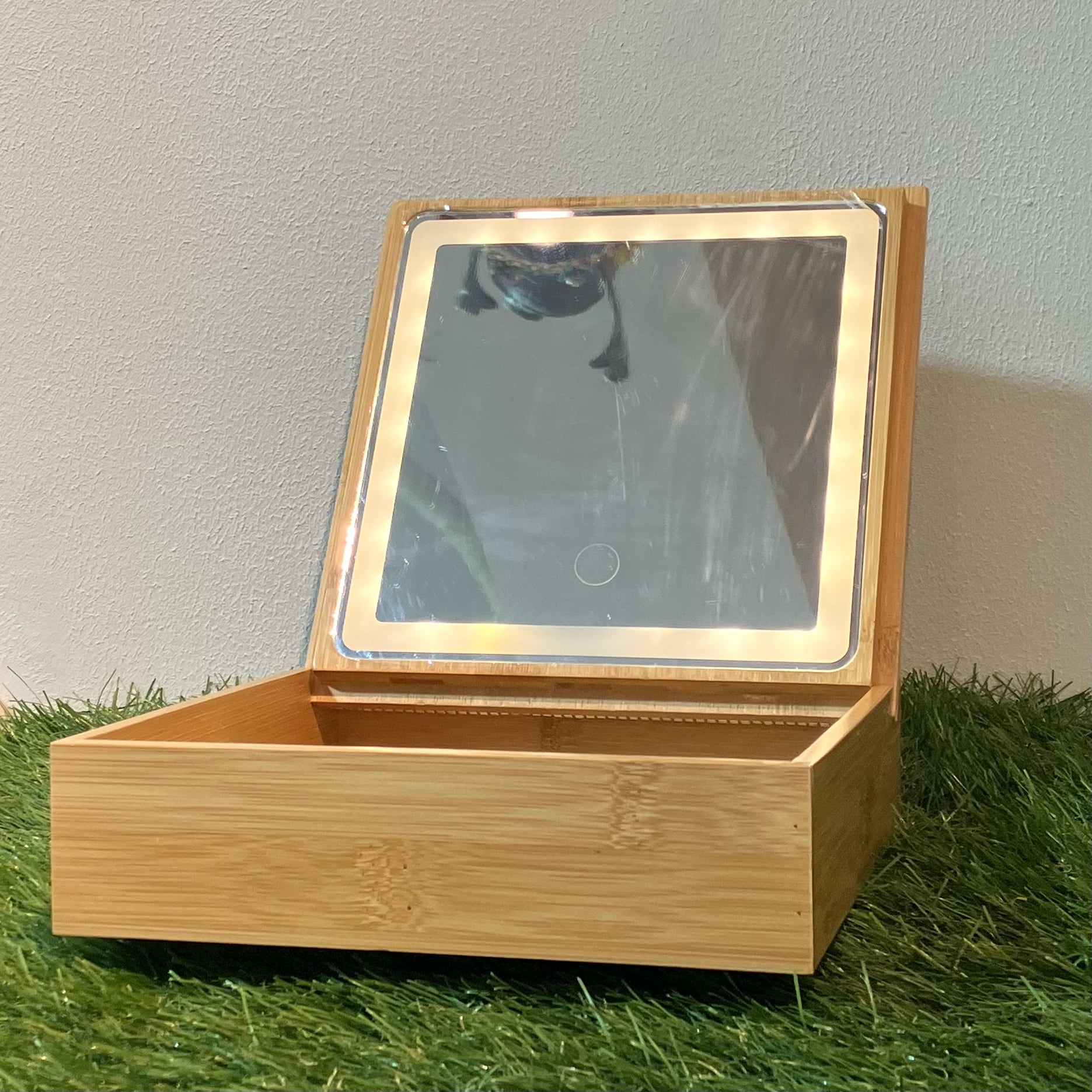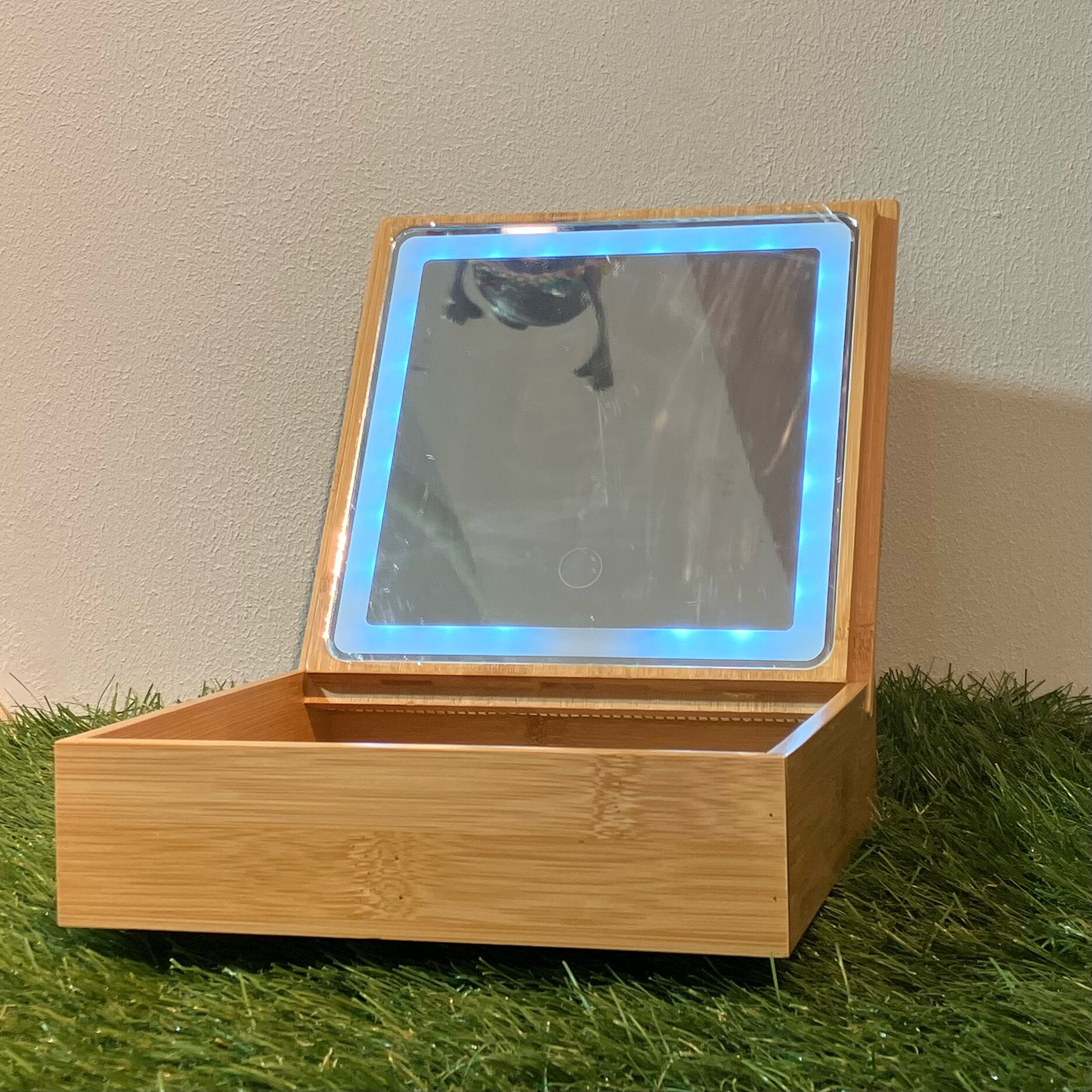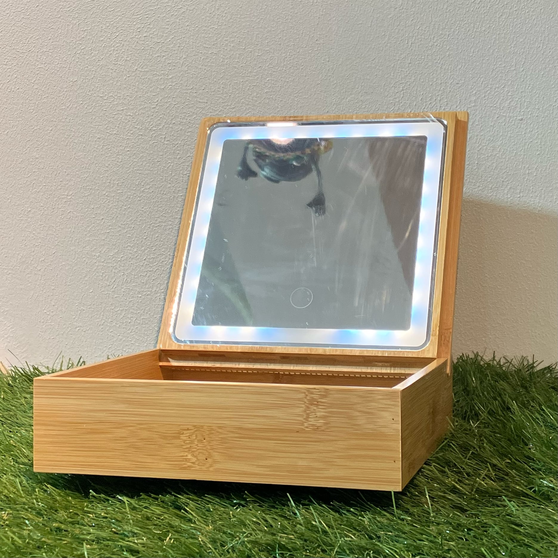 フタの裏側はミラーになっており、充電式のライトが周りを照らしてくれます。