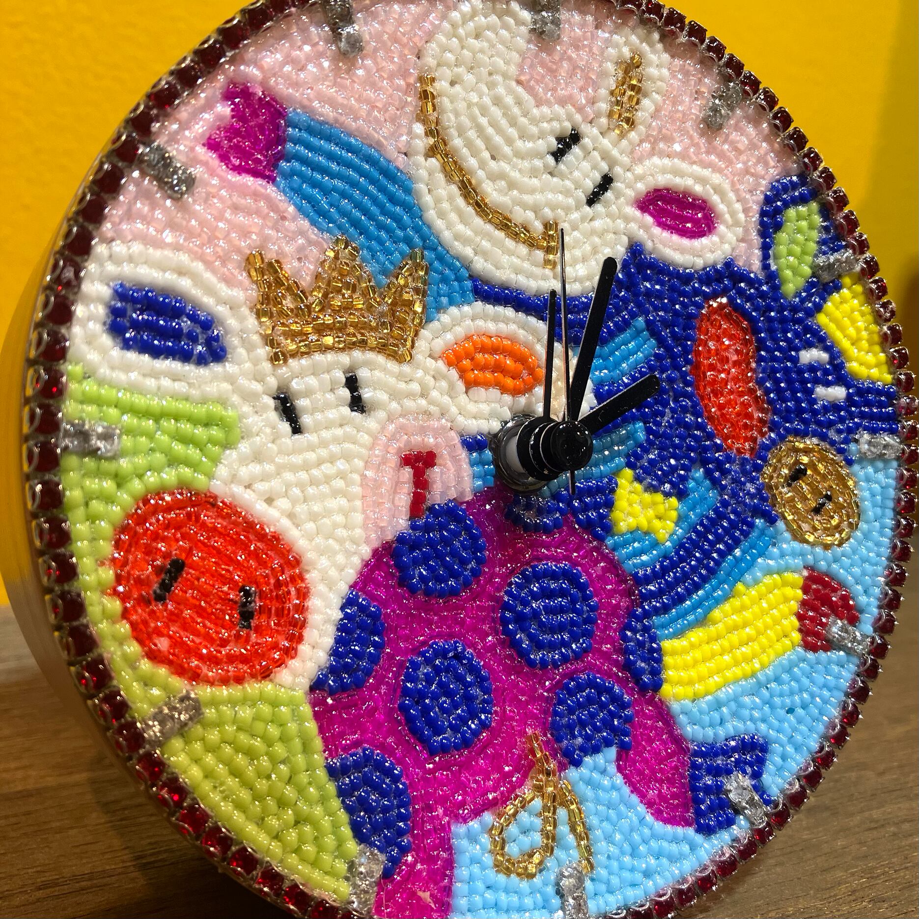 文字盤はビーズ絵になっています。