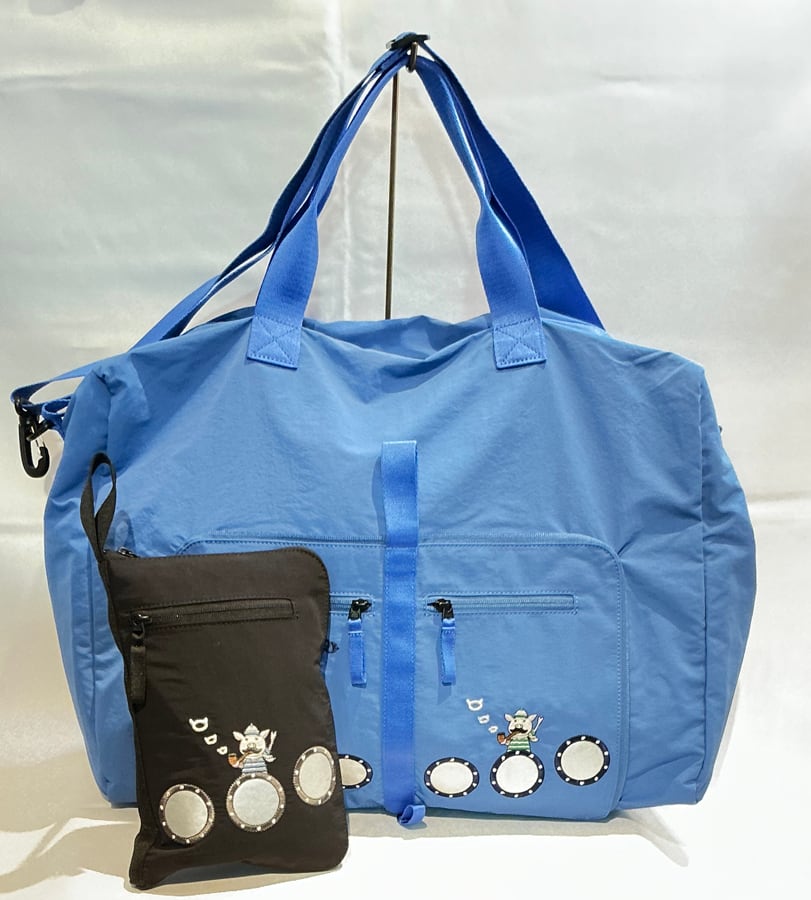 メインバッグとしても、ポケッタブルに収納して旅のお供にしていただいても活躍するサイズ。ショルダーベルトも付属するので斜めがけで持つこともできます。