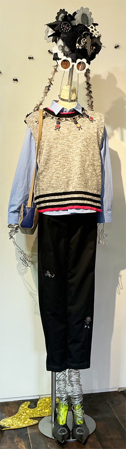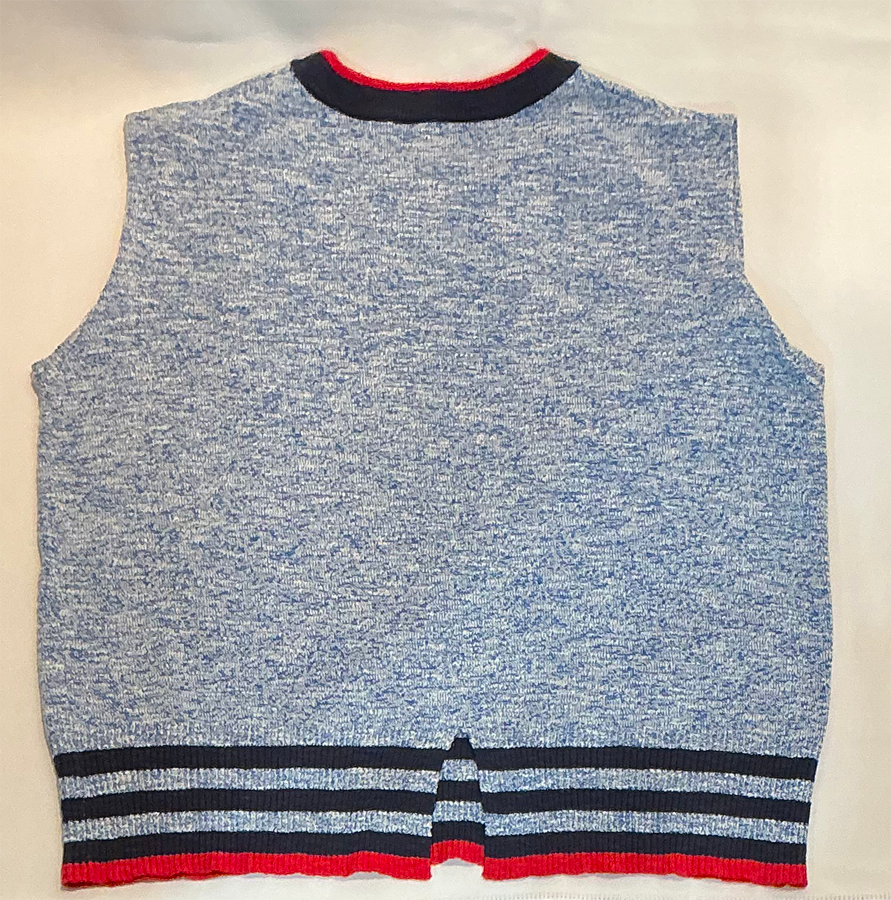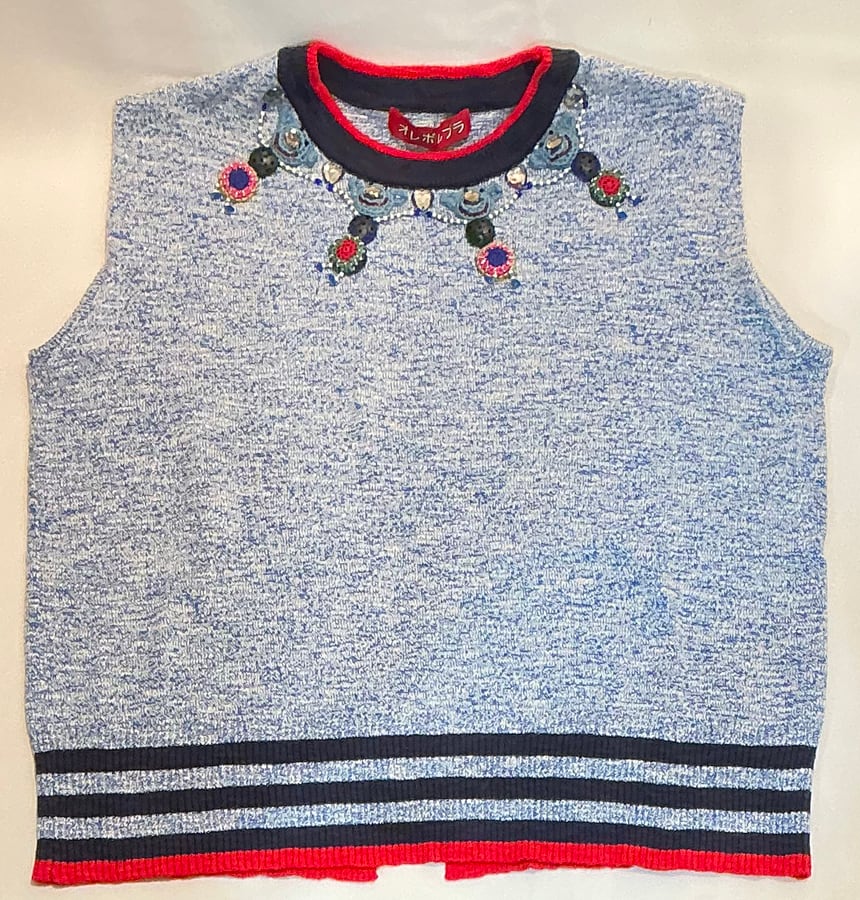 襟元についたかぎ針モチーフがアクセントのベスト。