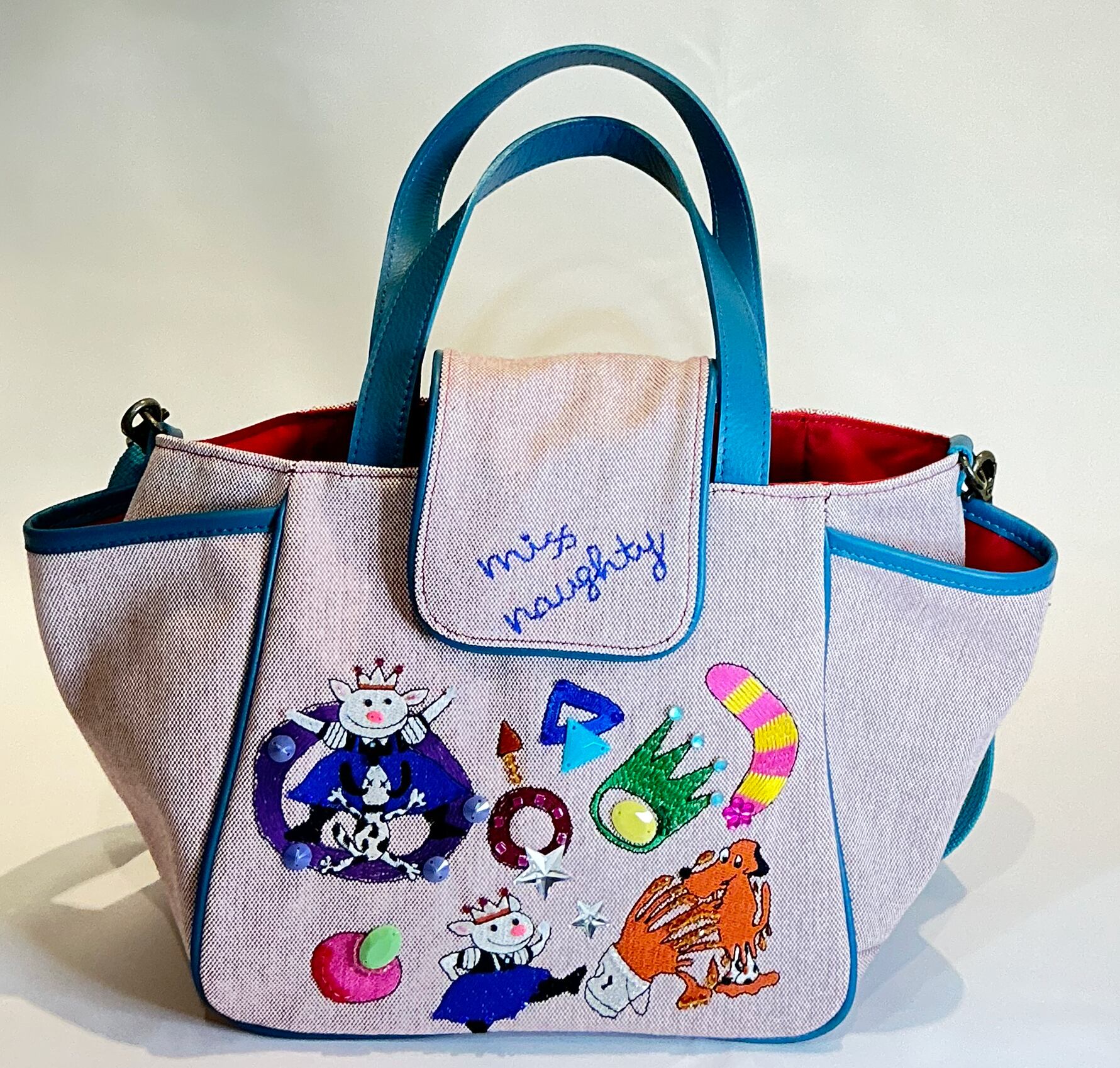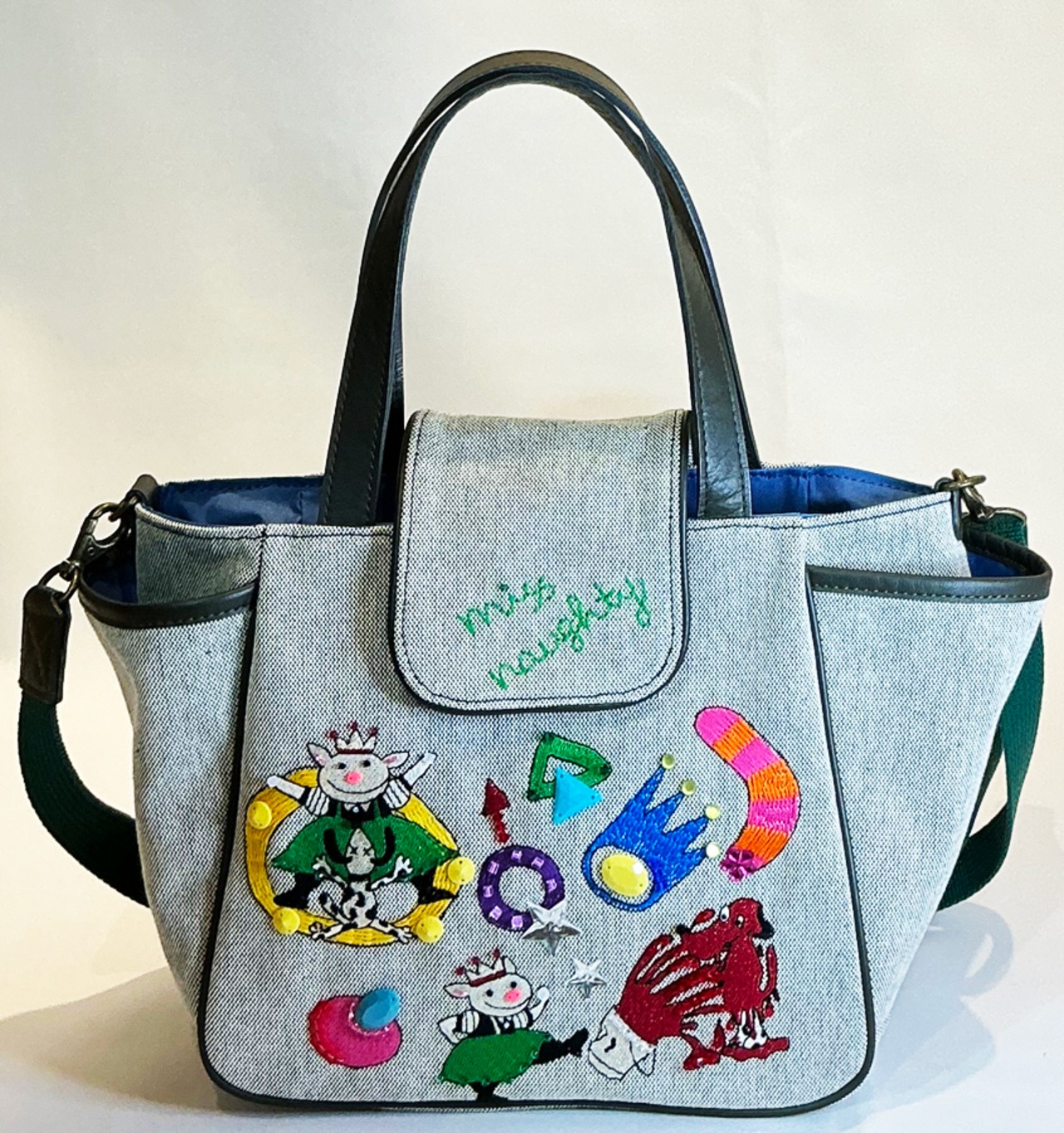 Ms.ノーティのこった刺繍がほどこされたバッグ。